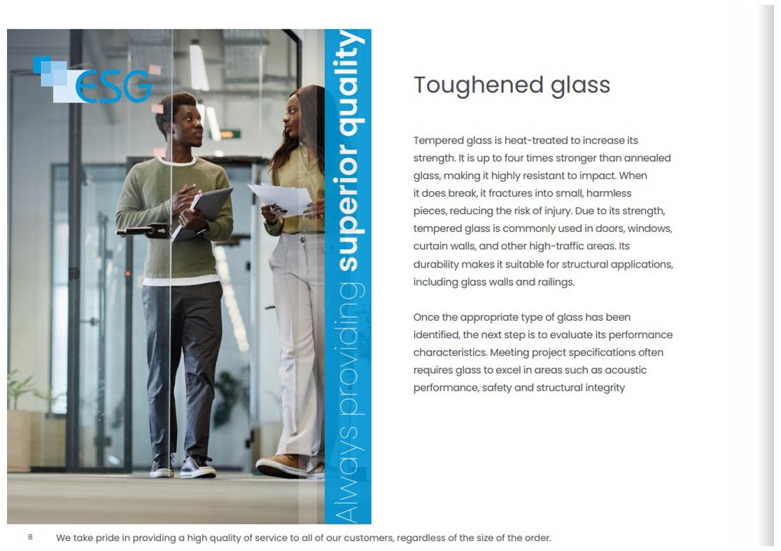 Unlock the insights needed to elevate your projects with ESG’s in-depth technica guide, Meeting Project Specifications with High-Quality Glass. This comprehensive resource walks you through critical factors for choosing the right glass solutions, tailored to meet today’s complex construction demands. With a focus on performance, safety, and aesthetic versatility, it’s an invaluable document for architects, engineers, and project managers.